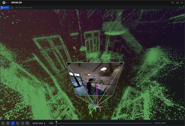 Go to project →Project Aria is a research platform developed by Meta Reality Labs Research to push the state of the art in egocentric AI research. Rerun is used to visualize sequences in their Aria Dataset Explorer.
